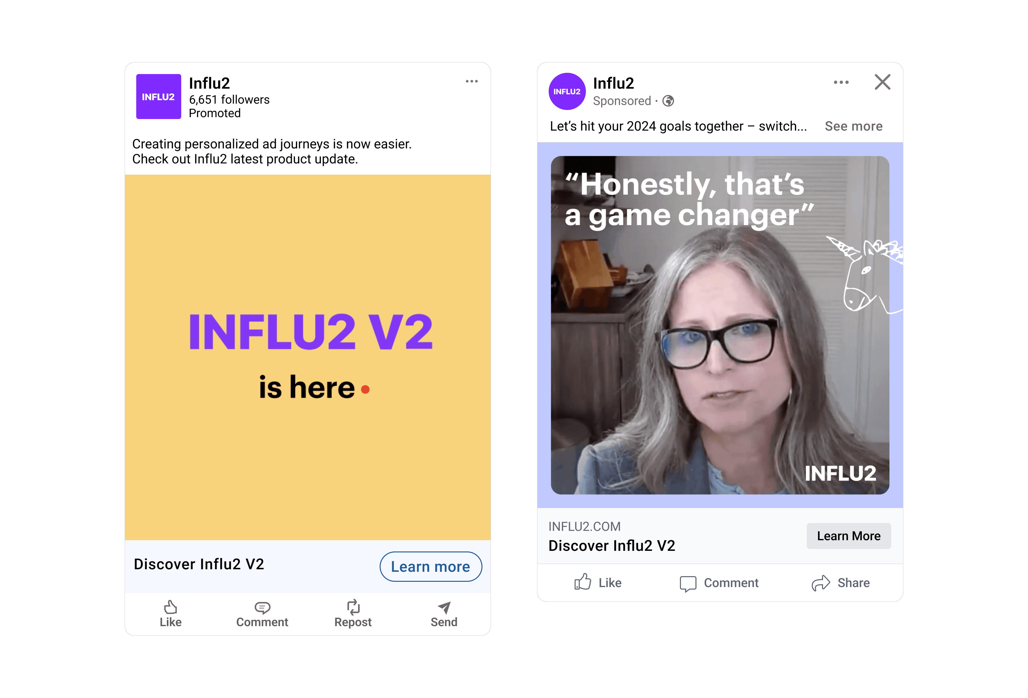 1. Influ2 ad engagement data. Influ2 tracks a user's interaction with your ads, including impressions, clicks, and landing page visits. This data helps you understand their level of engagement and current stage in the customer journey. For instance, if a prospect clicks on your theoretical guide and a few value props, it’s safe to assume they now require more advanced content. So it’s time to adjust ad creatives and show more information about specific case studies or use cases.