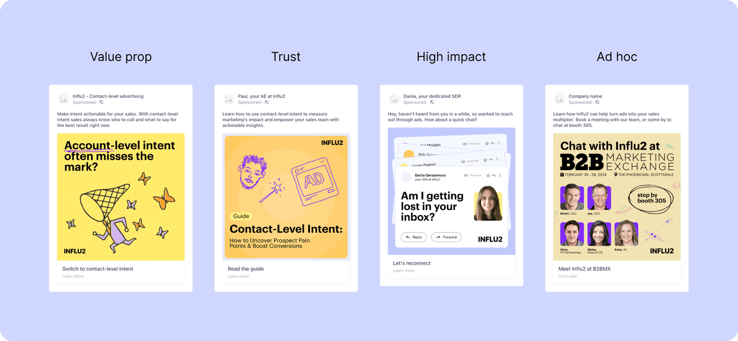 Influ2 is built for this reality and helps brands act on contact-level intent, reach named buyers with ads, and make their revenue impact clear.