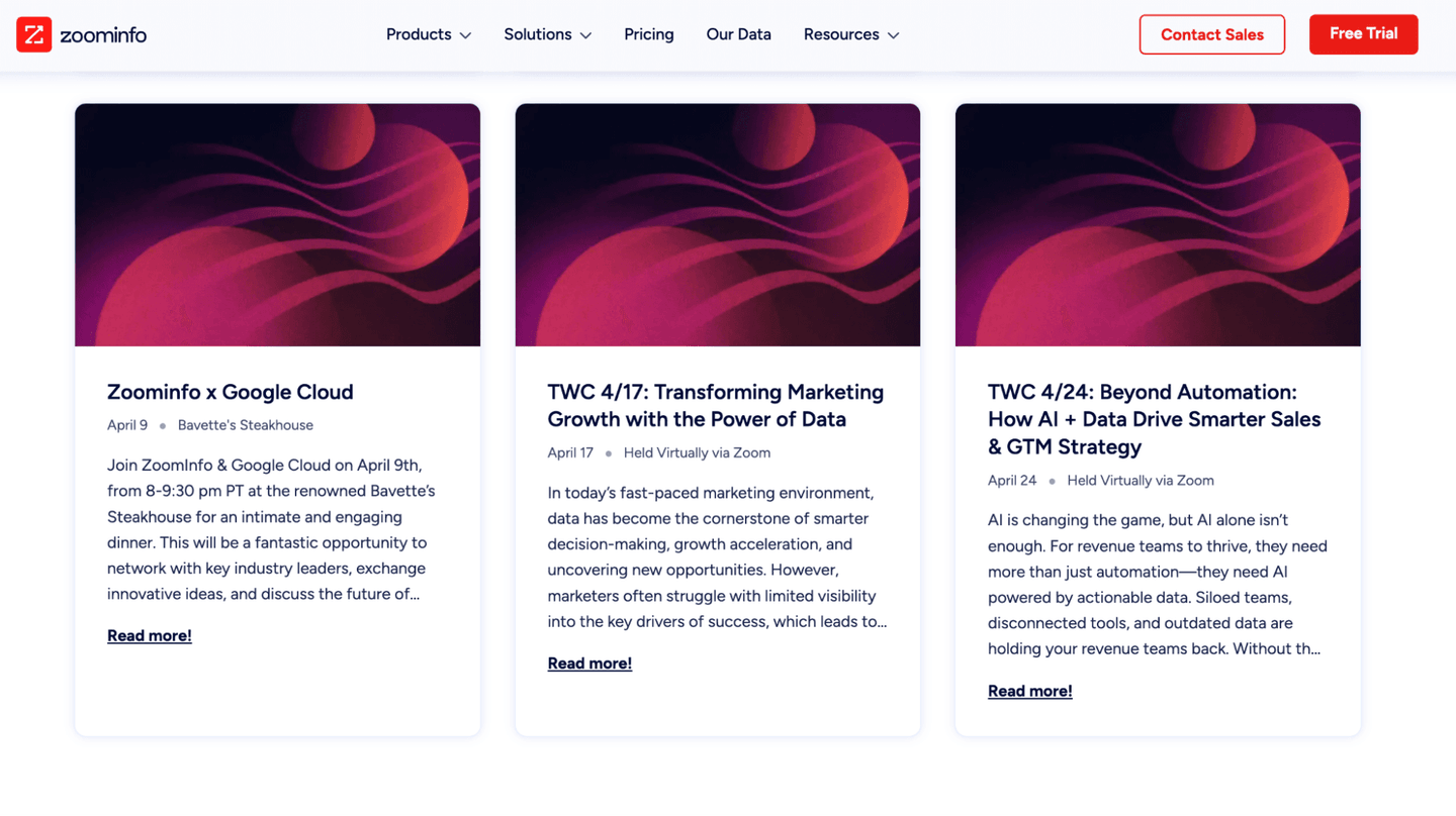 Someone showing up to the ZoomInfo x Google Cloud dinner might be an interested buyer, but there’s an equal chance that they’re just there to network. The event itself just isn’t specific enough.