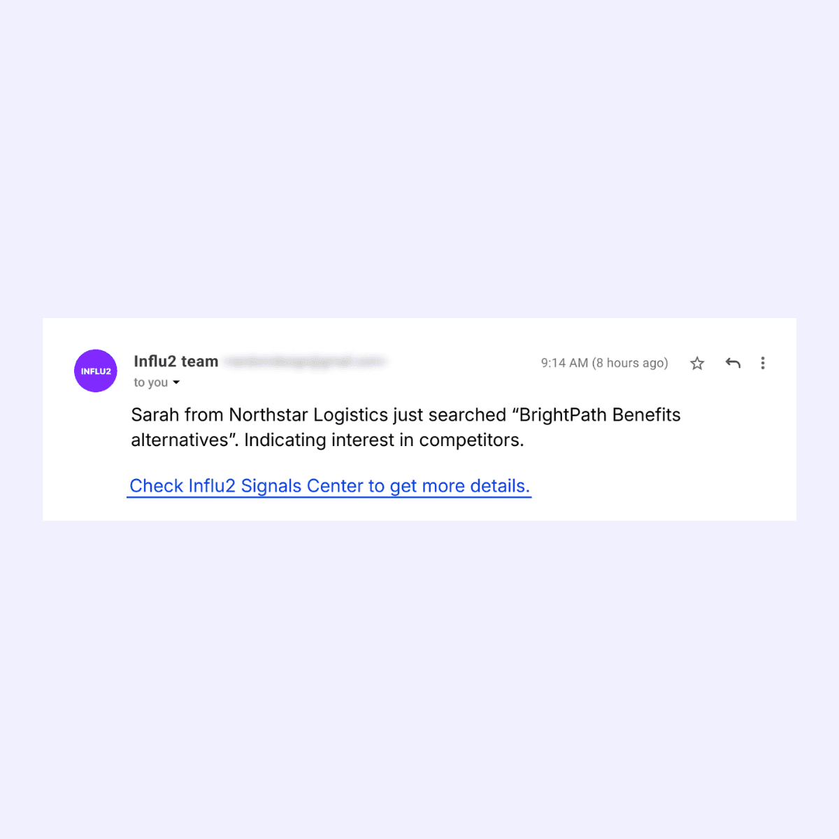 Say the HR Director, driving a deal your team is working on, is researching a competitor, and a contact-level signal comes through from Influ2:
