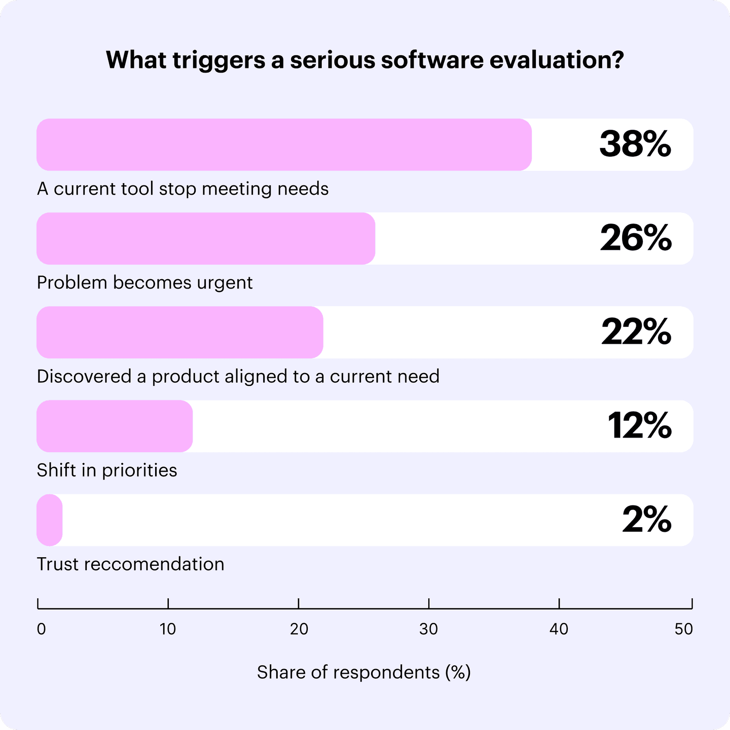 We surveyed 50 senior-level B2B buyers across enterprise and mid-market companies, and they told us where their buying journey typically begins: when a current tool stops meeting their needs.