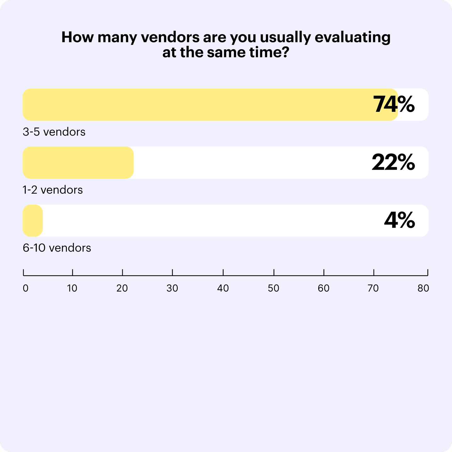 According to our survey, 74% of B2B buyers are evaluating 3-5 vendors at once, so never assume you’re the only company they’re talking to or being approached by.