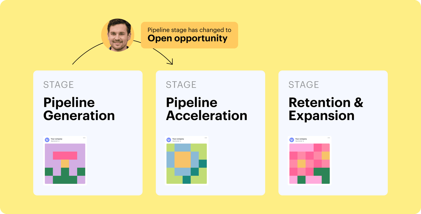 For instance, after prospects have an initial sales call and become open opportunities, you could show them ads that highlight relevant product use cases or case studies with companies similar to theirs.
