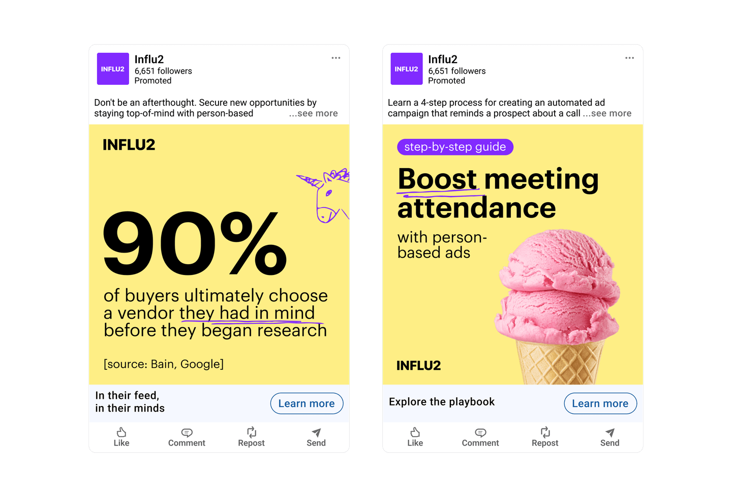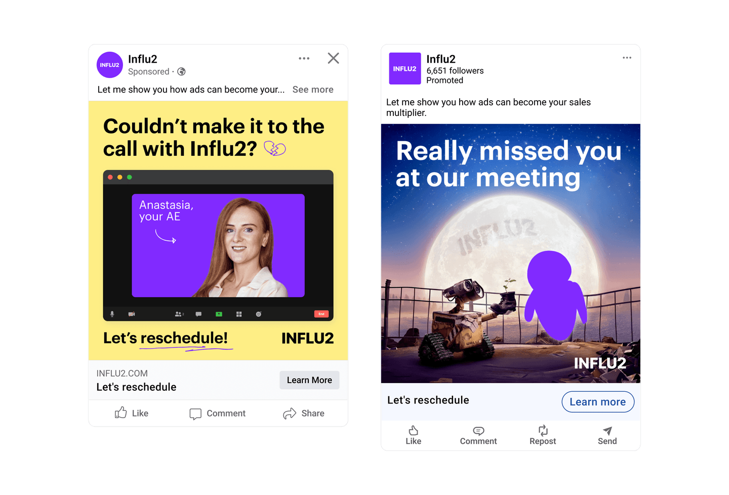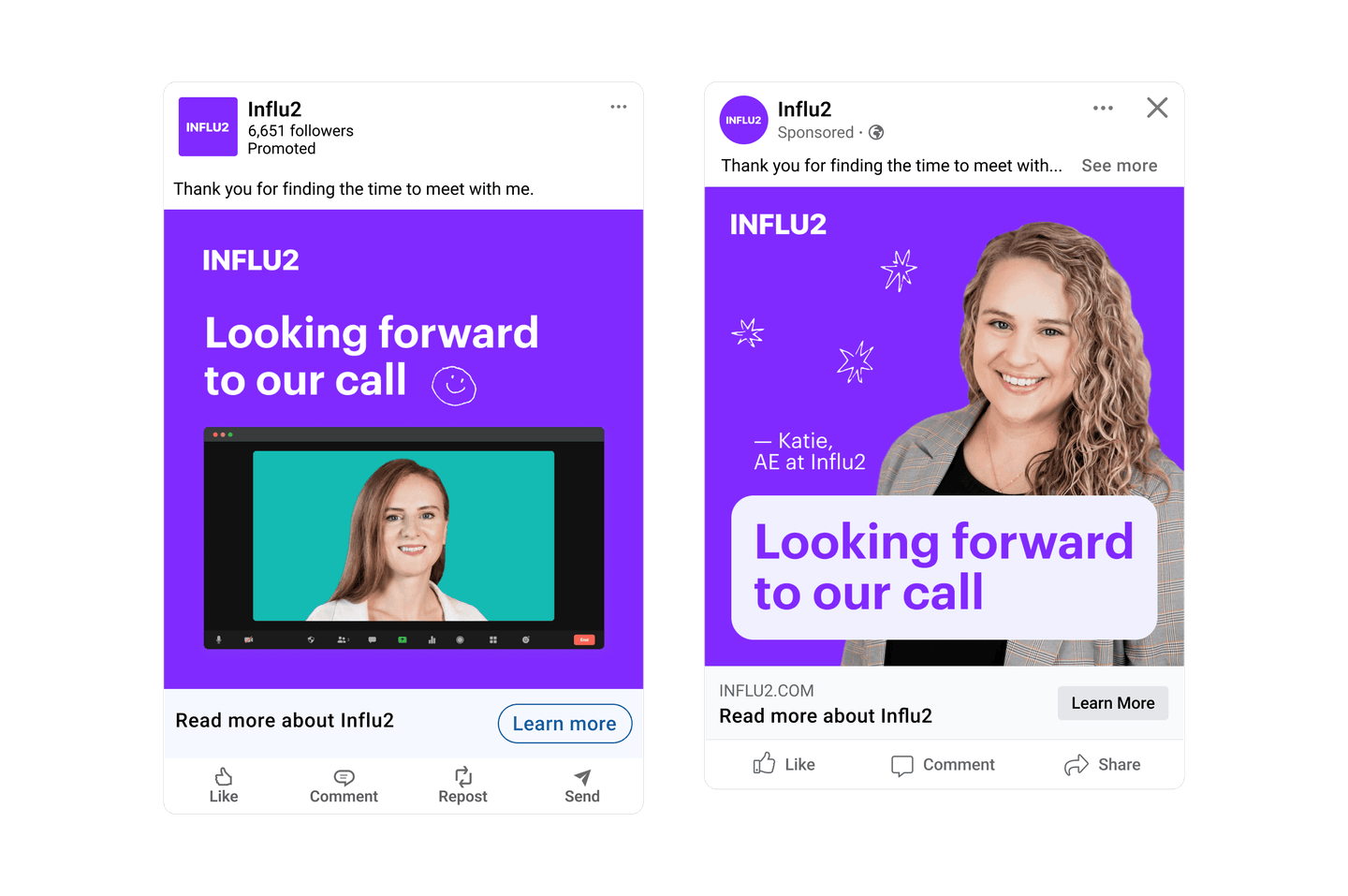 5. Demo show-up campaigns. After the call is booked, ads can also help you boost its attendance. Feature content that reminds attendees of an upcoming meeting and incentivizes attendance. Ads with personalized invitations from account executives can do the trick.