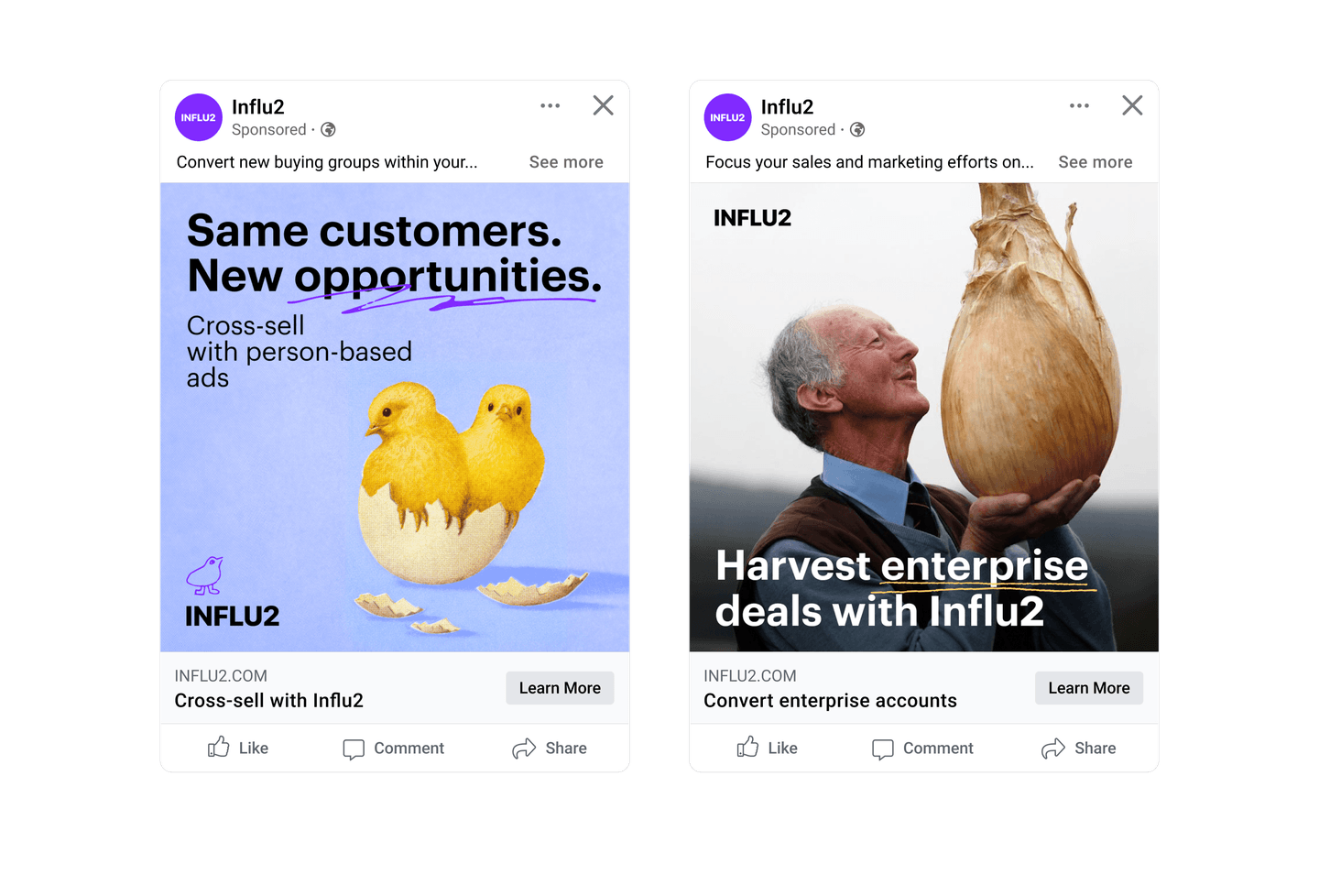 The traditional ABM platforms allow you to move entire accounts through the journey. But if the goal is to provide a personalized ad experience to each buyer, this approach simply won’t do. As a contact-level ABM engine, Influ2 shows ads to specific people. This means that you can create custom journeys for different groups and automate ads swap for each person.