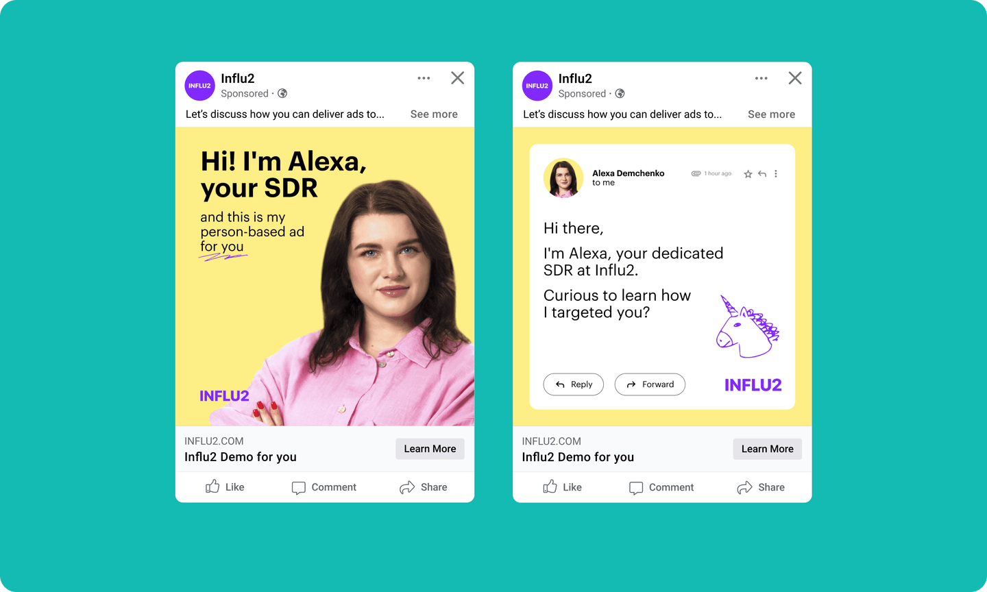 One strategy we use at Influ2 is running ads featuring the SDR who is actively reaching out to their prospects.