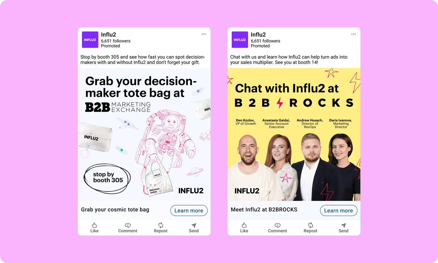 For instance, we recently held a webinar to launch our new Sales & Marketing Alignment Dashboard. As part of the promotion, we ran contact-level ads (with Influ2) targeting customers who’d benefit from the feature.