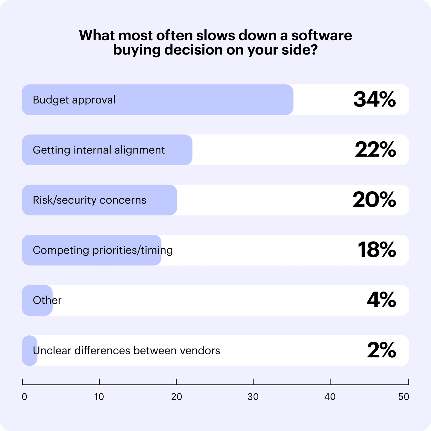 The real barriers run deeper than any single conversion rate. Influ2's 2026 enterprise buying survey found that budget approval is the top deal blocker for 34% of buyers, getting internal alignment for 22%, and security review concerns for 20%.