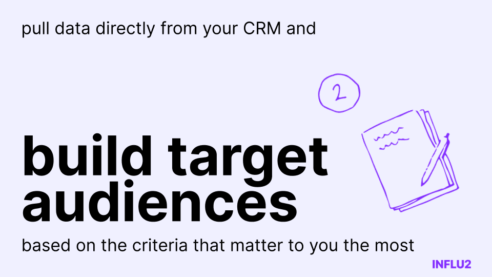 Influ2 V2 helps you build target audiences by dynamically pulling data directly from your CRM and using Cohort builder as a constructor. You can define the criteria that make the most sense for your business, such as persona, industry, or awareness level. This way, you’ll always stay on top of sales priorities and target the same audience your sales are going after.