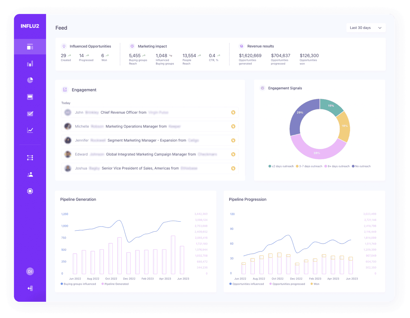 Influ2 enables the targeting of specific people and the provision of contact-level insights to sales reps. Such precision boosts conversion on the key stages of sales cycles (from pipeline generation to customer expansion).