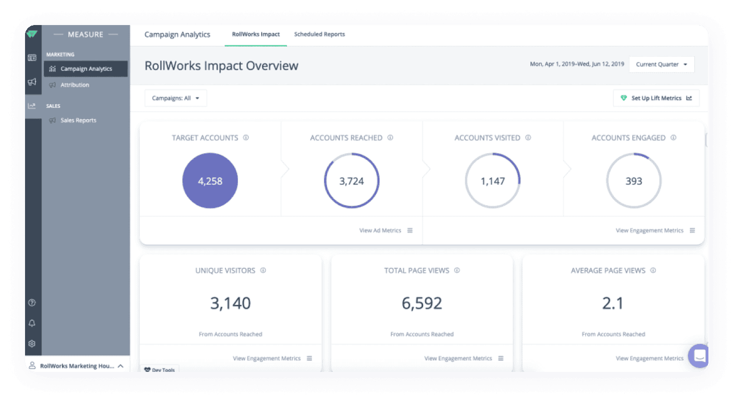 RollWorks is an ABM platform known for its use of IP-targeting, extensive third party data, and user-submitted data when targeting buyers. Their approach is usually a good fit for smaller companies.