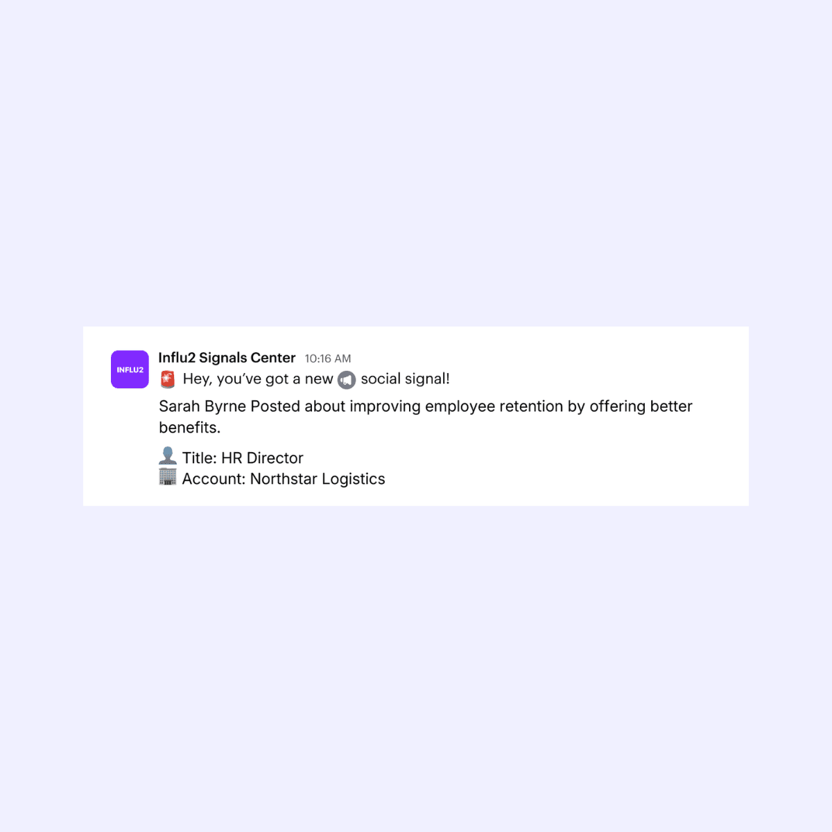 For example, with Influ2, reps might receive a social signal about a buying group member within a target account, like this: