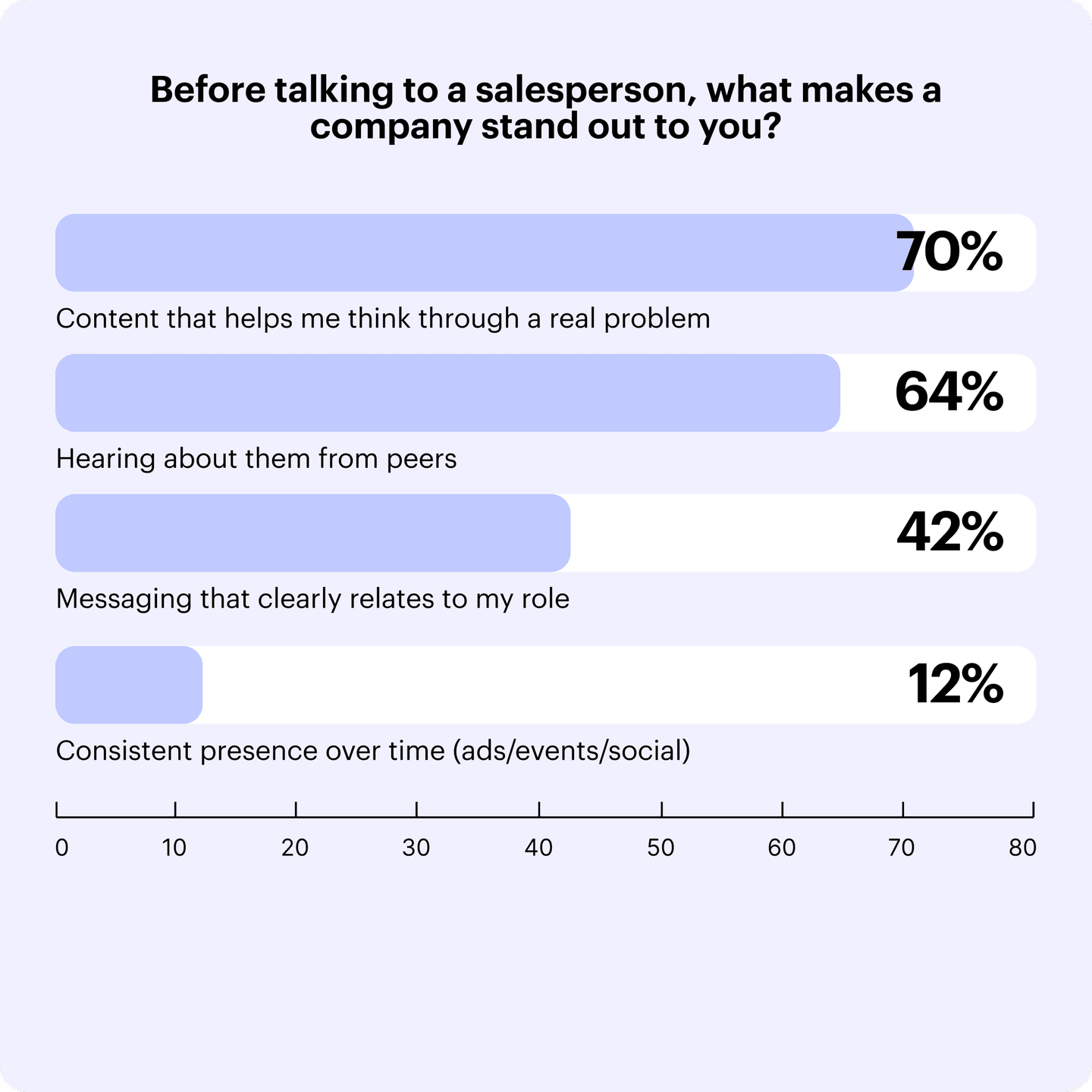 Seventy percent of B2B buyers we surveyed said the number one thing companies can do to stand out is provide content that helps them think through a real problem.