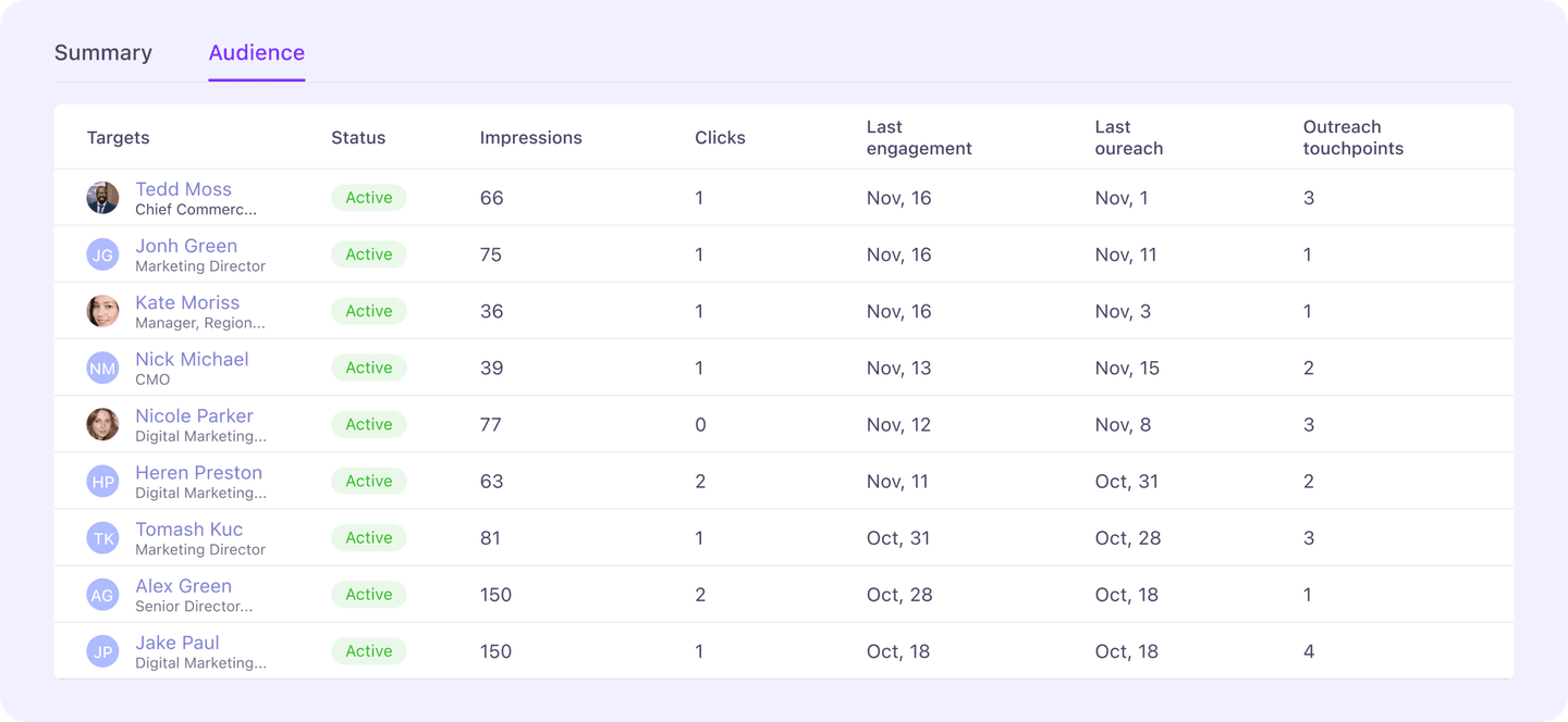 The intent data you receive from Influ2 comes from how your prospects engage with your ads.
