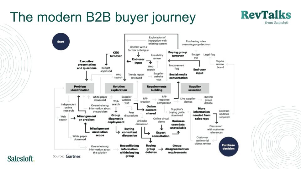 Before you even know a buyer is interested in your company, they’ve already done their homework. They've scrolled through reviews, checked out product comparisons, and watched your virtual demo. According to Gartner, a sales rep gets roughly 5% of a customer's total purchase time.