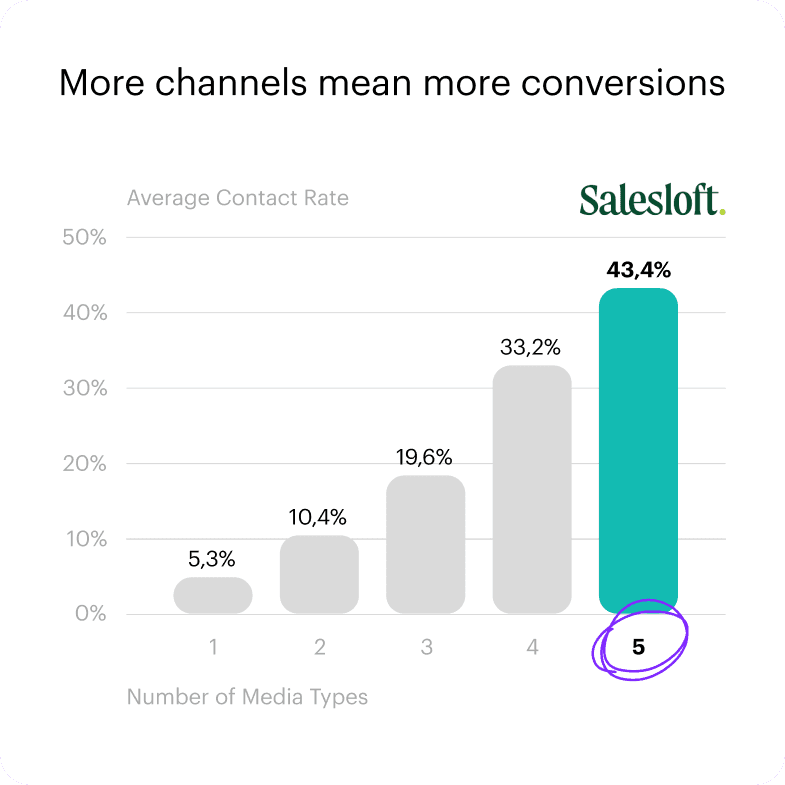 Salesloft research into the impact of an omnichannel approach shows a pretty clear trend: more channels mean more conversions.