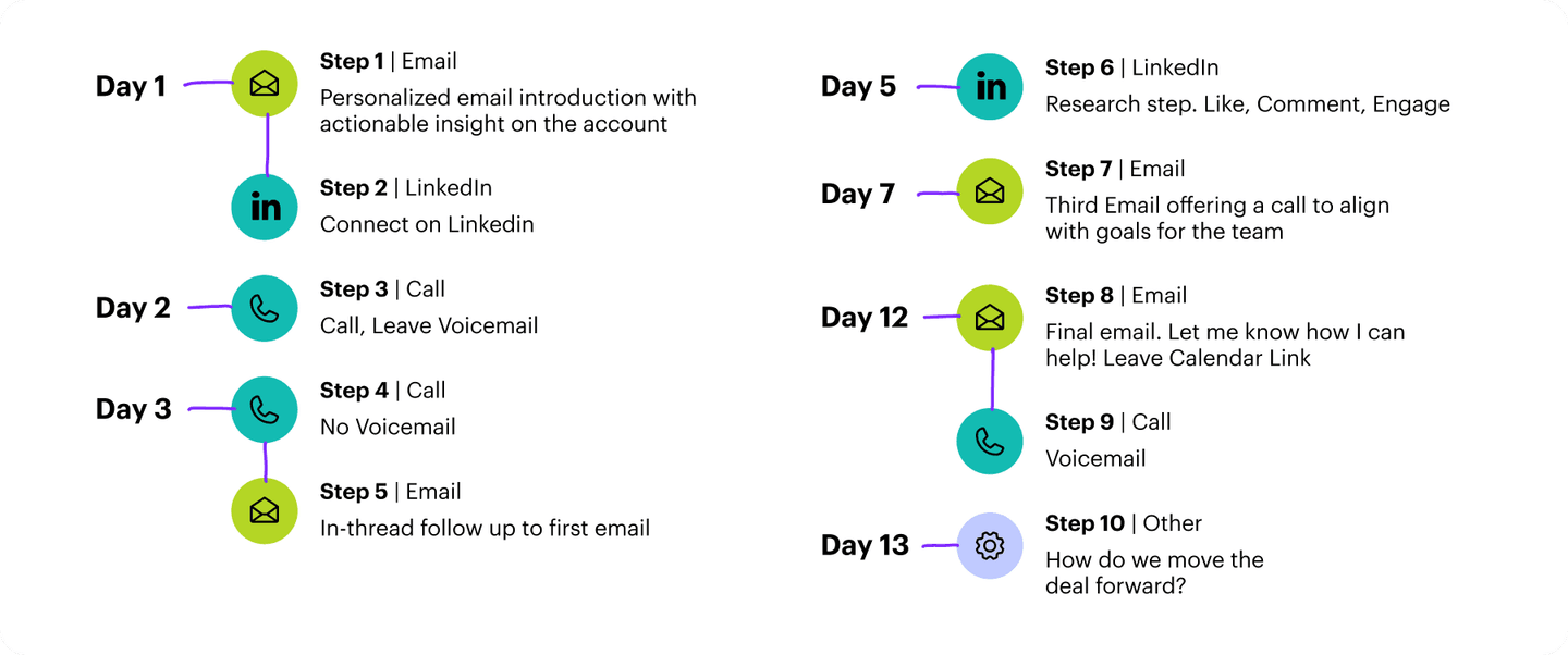 They recommend doing this with each sales touch. Track which emails perform best, which call scripts are most effective, which LinkedIn messages resonate, and any other data point you can collect.