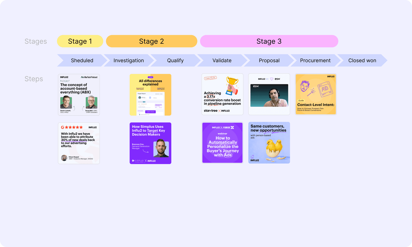 As accounts move through the sales process and buyers’ awareness grows, our ads become increasingly personalized.